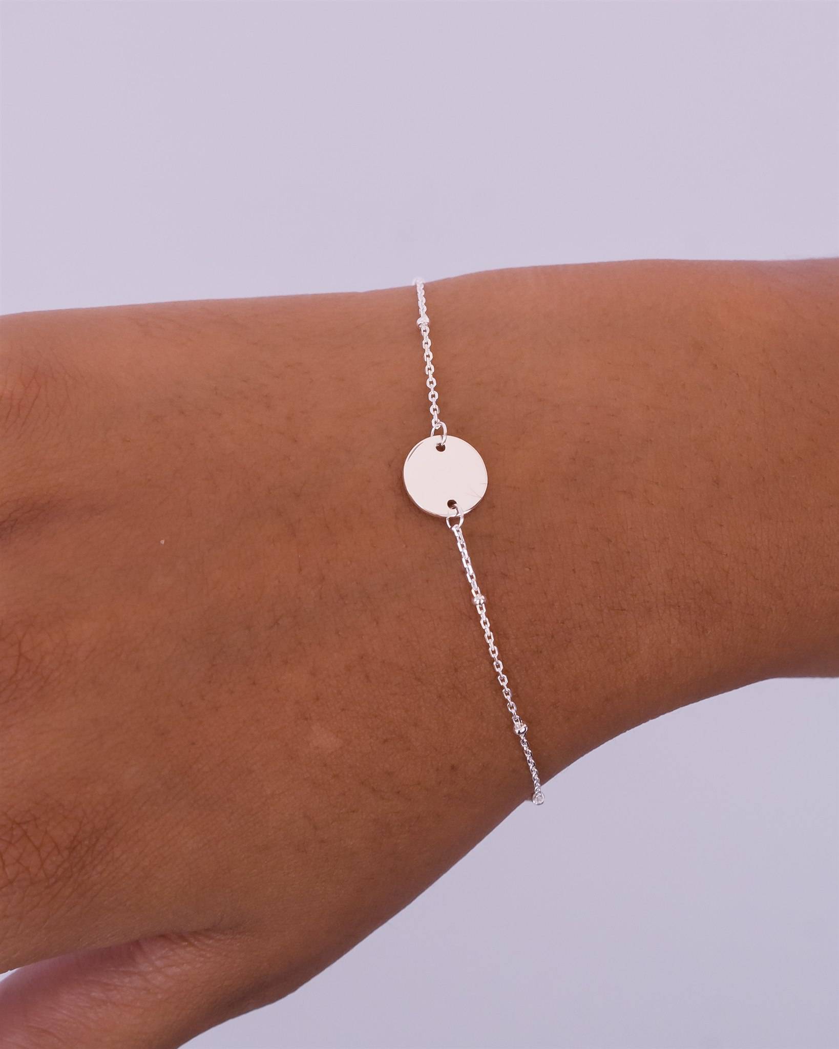 Sterling silver flat disc bracelet that can be engraved with your choice of initial or name or symbol.
