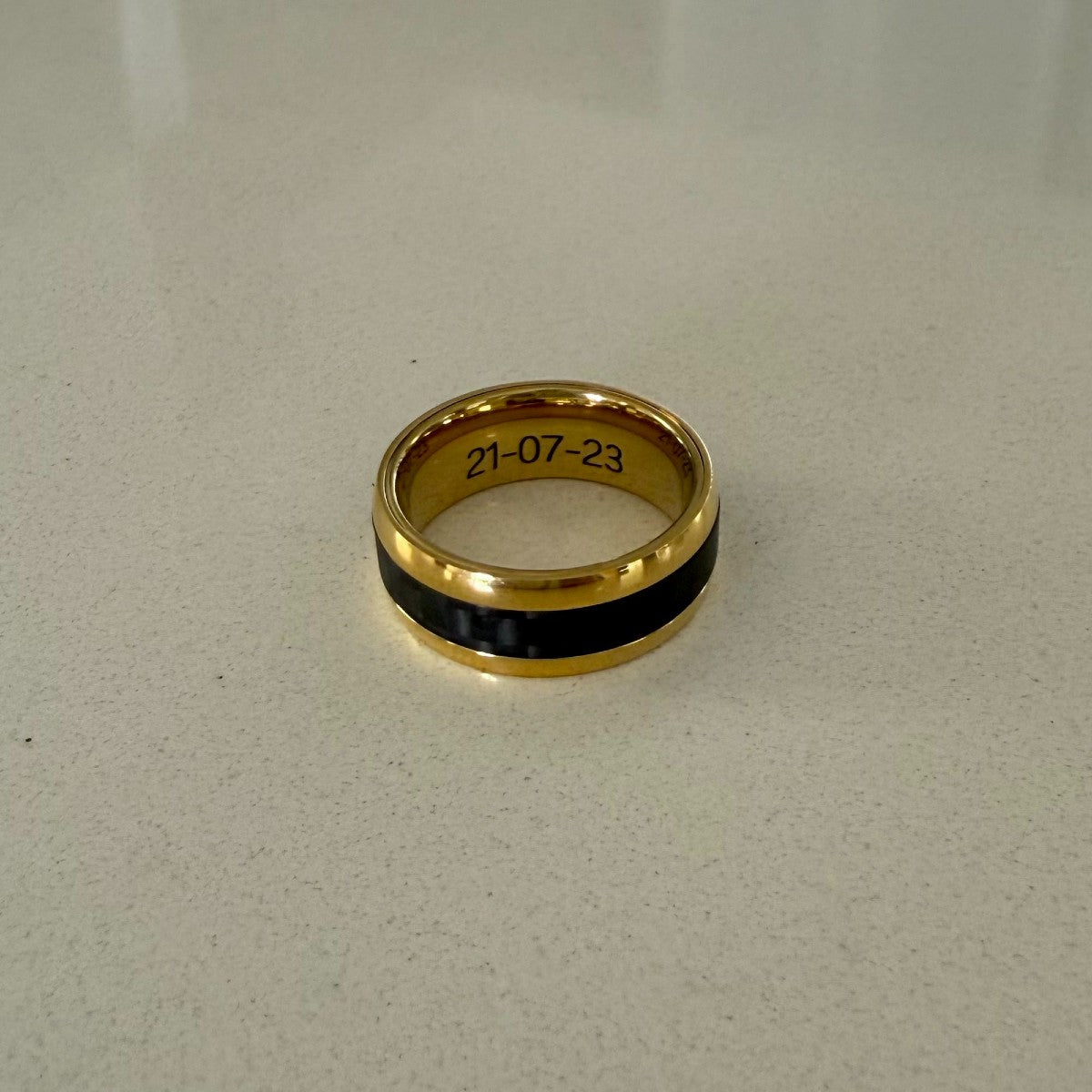 Personalised Gold Plated Steel Men’s Ring with Carbon Fibre Inlay