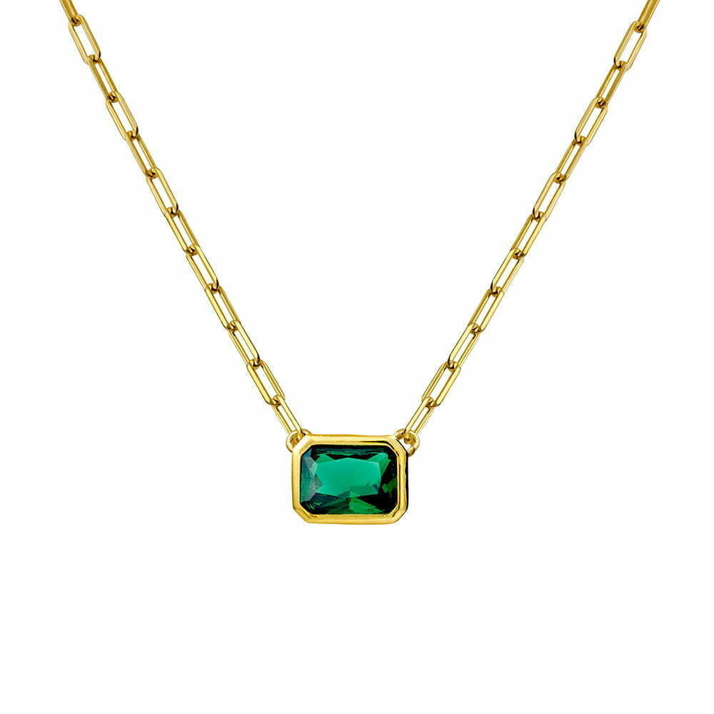 Sterling Silver Necklace with Emerald or Ruby CZ Pendant