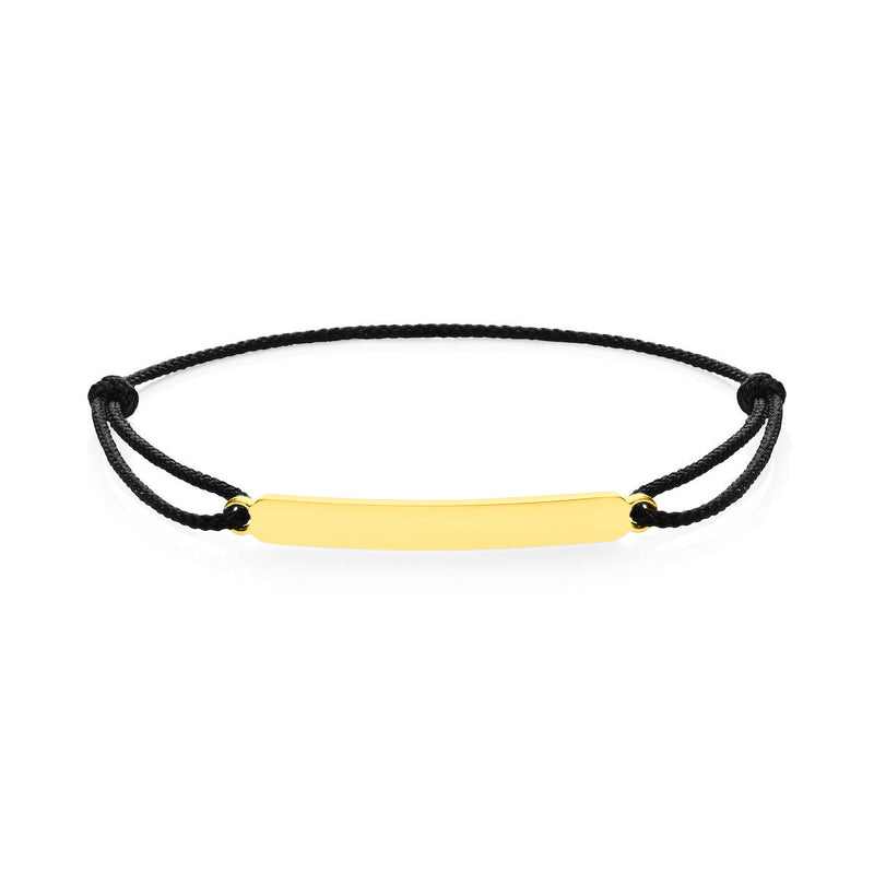 Gold-plated ID bracelet with an adjustable black cord, perfect for everyday wear and layering. Available in 14ct gold-plated sterling silver or gold-plated stainless steel for a timeless, elegant look.