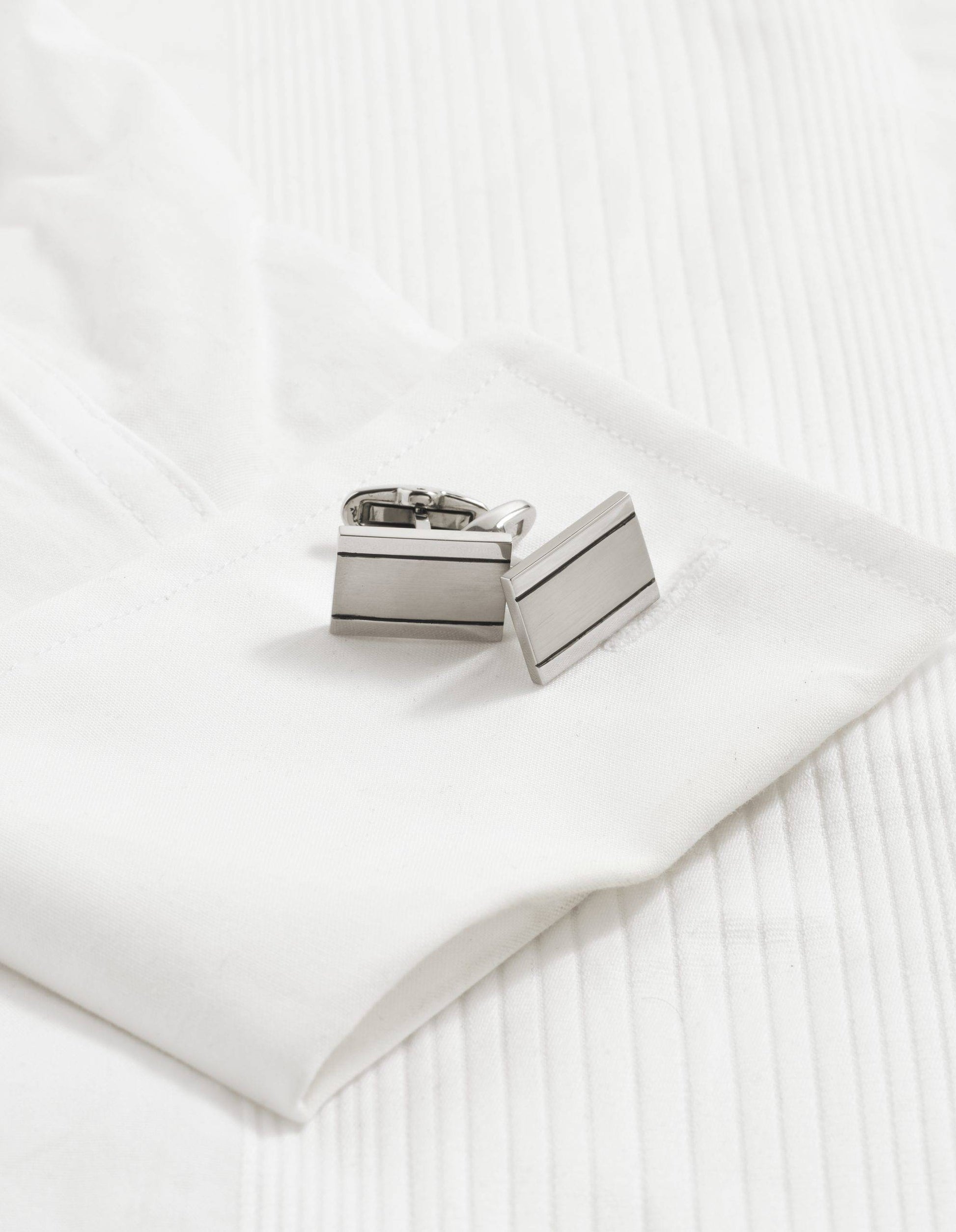 BRUSHED/POLISHED STAINLESS STEEL RECTANGLE CUFFLINKS