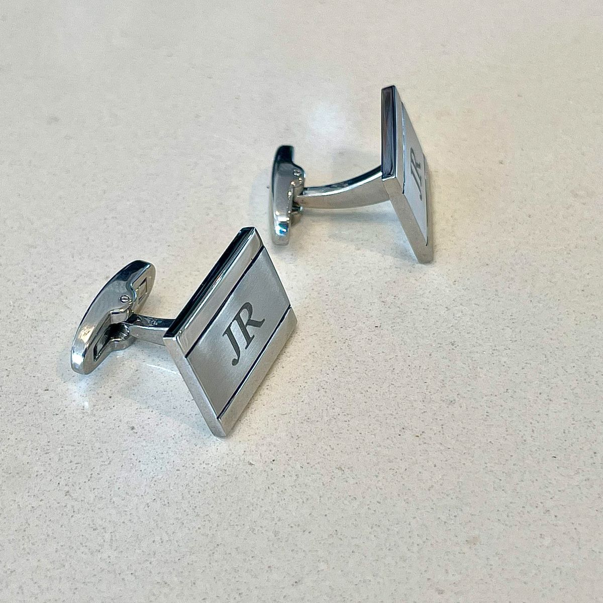 These handsome brushed / polished stainless steel rectangle cufflinks can be engraved with your choice of ten characters. Cufflink face is 14 x 20 mm