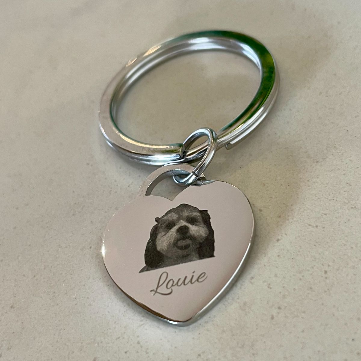 You can engrave the front and back of the heart with any name, phone number, special message, initials or symbols. You can also engrave a photo, handwriting, drawing, logo, fingerprint or paw prints.