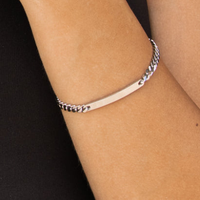 Discover timeless style with our Stainless Steel 6mm Curb Link ID Bracelet – a sleek and durable accessory that can be personalised with your choice of text, up to 30 characters. ID bar is 4.5mm wide bracelet is available in lengths S (17cm), M (19cm) and L (20.5cm) with secure lobster clasp closure.