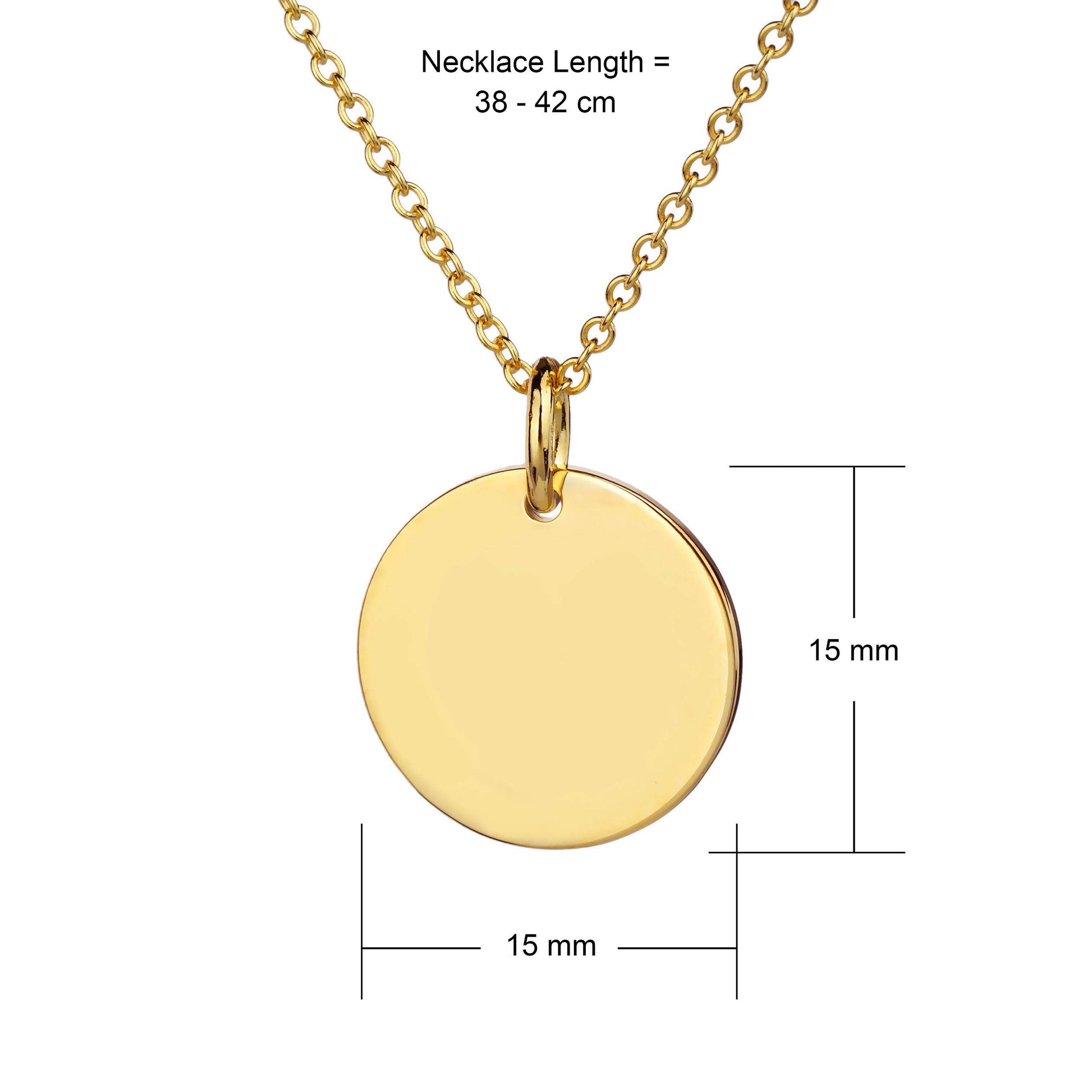 Personalise this yellow gold disc necklace with initials, text, an icon, or even a custom design. We offer complimentary engraving on the front and can also engrave custom designs, handwriting, or photos for a truly unique touch.