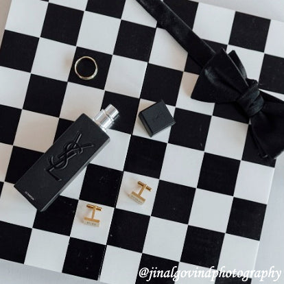 Gold stainless steel cufflinks with hinged back for easy attachment through button holes. Engrave these cufflinks to create a unique gift. Each side can be engraved with any custom design. Comes gift boxed.