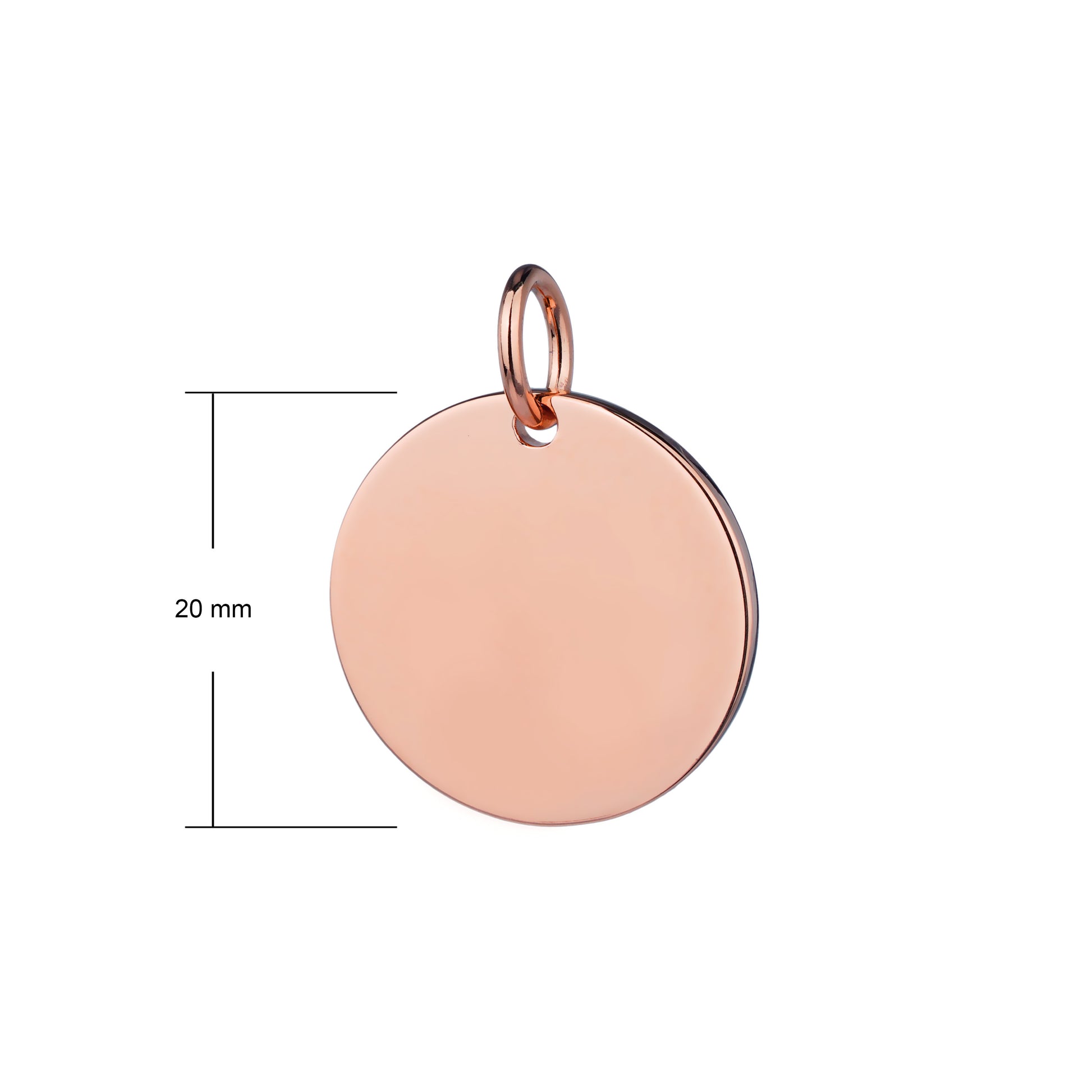 The large disc is made from silver plated in rose gold, 20mm wide and 1.5mm thick and can be engraved both sides.
