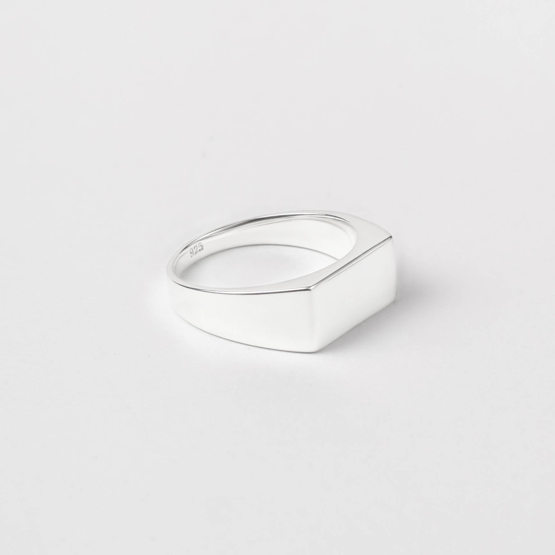 A statement piece of jewellery, this sterling silver rectangular signet ring can be engraved.