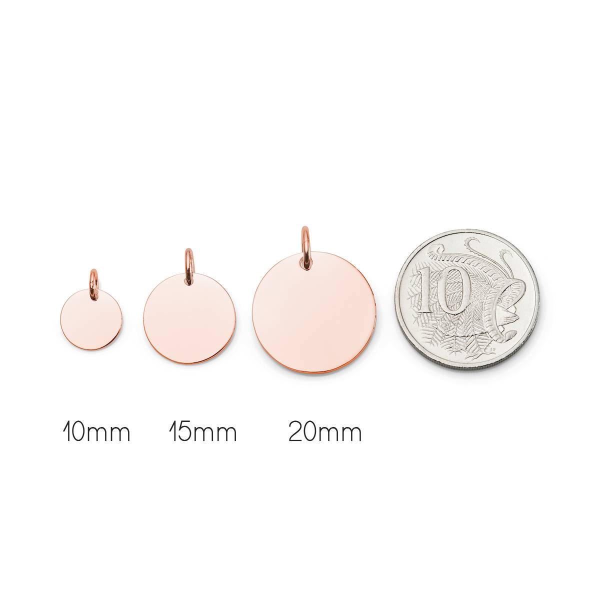 The disc pendant measures 15mm in diameter and 1mm thick, offering enough space for up to 30 characters. Engraving is available on both the front and back of the pendant, with best results achieved using up to six short words.