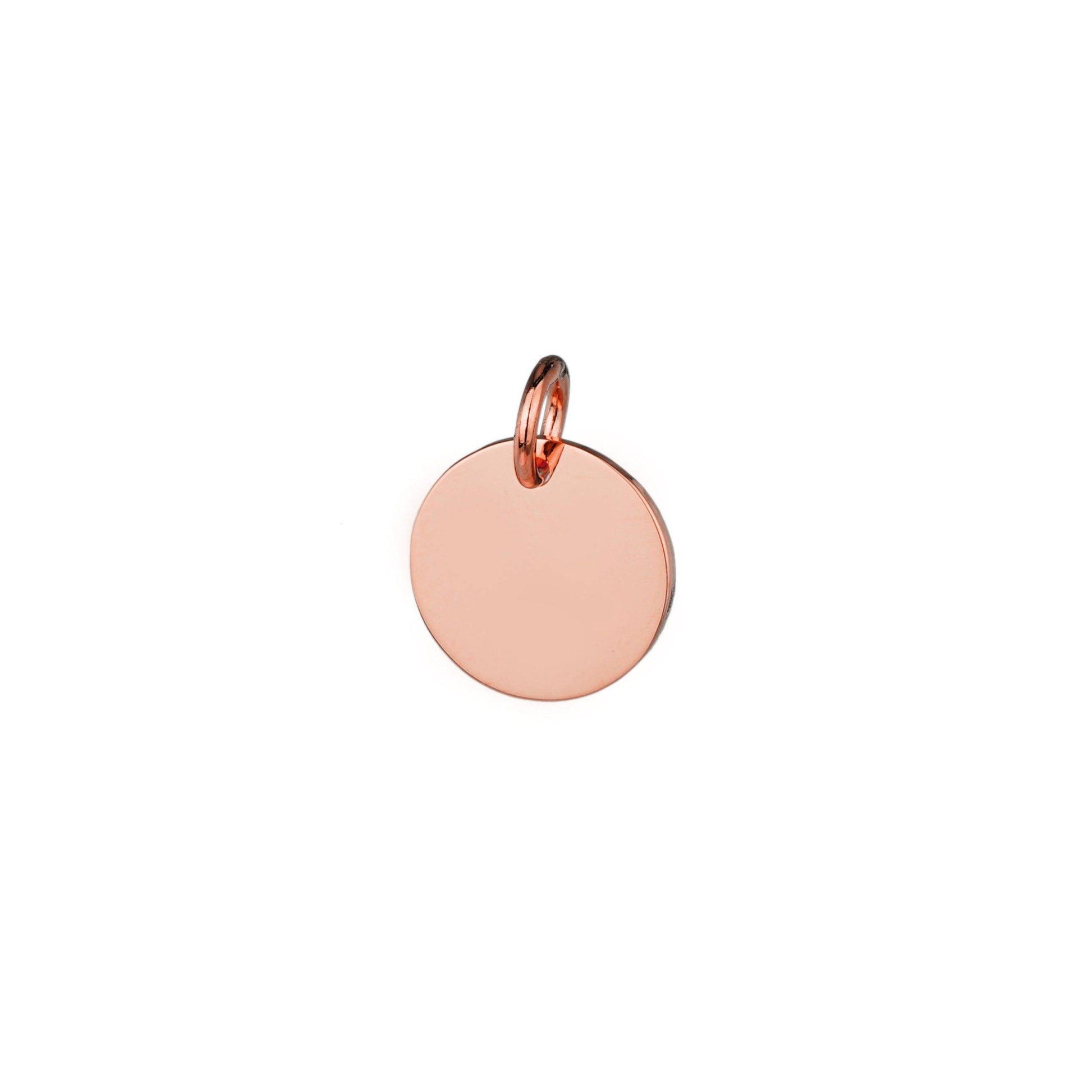 This delicate rose gold mini disc pendant is made from sterling silver plated with rose gold. The pendant is 10mm wide and perfect for engraving one word, name, initials or symbol per pendant side and arrives in a velvet pouch ready for gift giving.