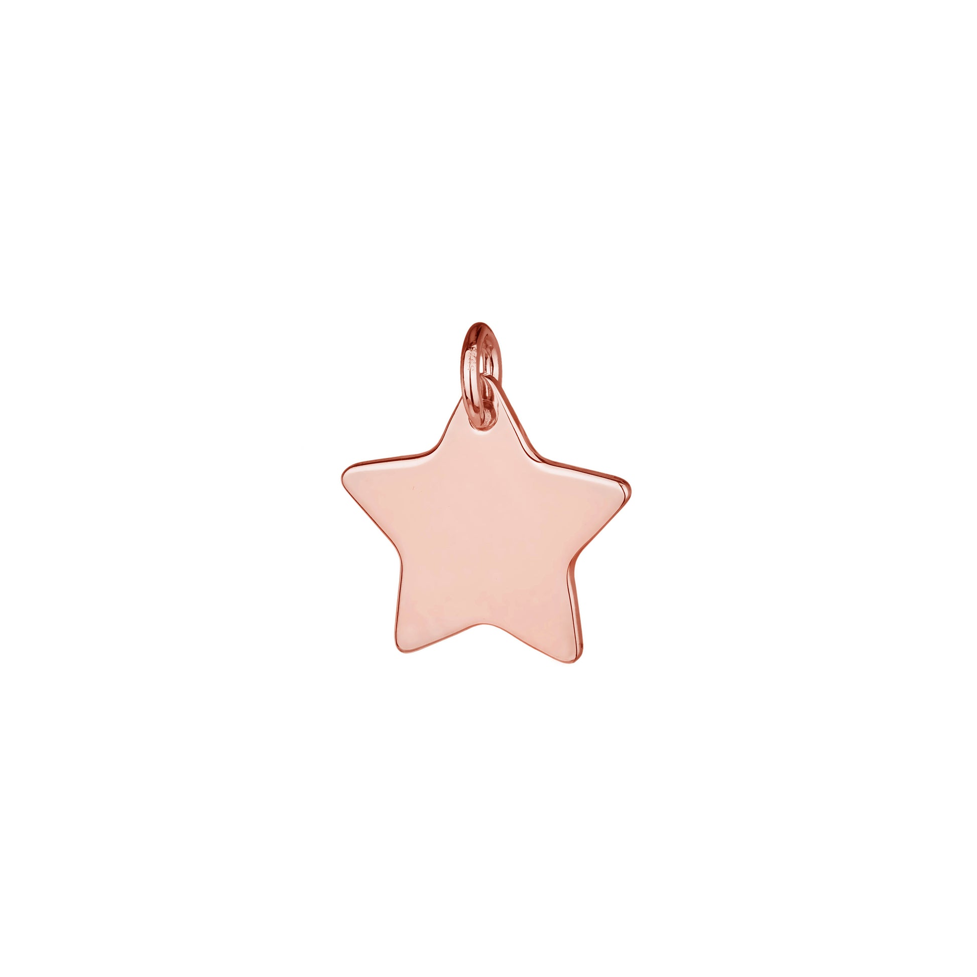 Eye catching rose gold star necklace made from quality sterling silver silver, plated in rose gold. This beautiful 17mm wide star can be engraved on both sides with your choice of text, such as initials, dates, names or symbols.