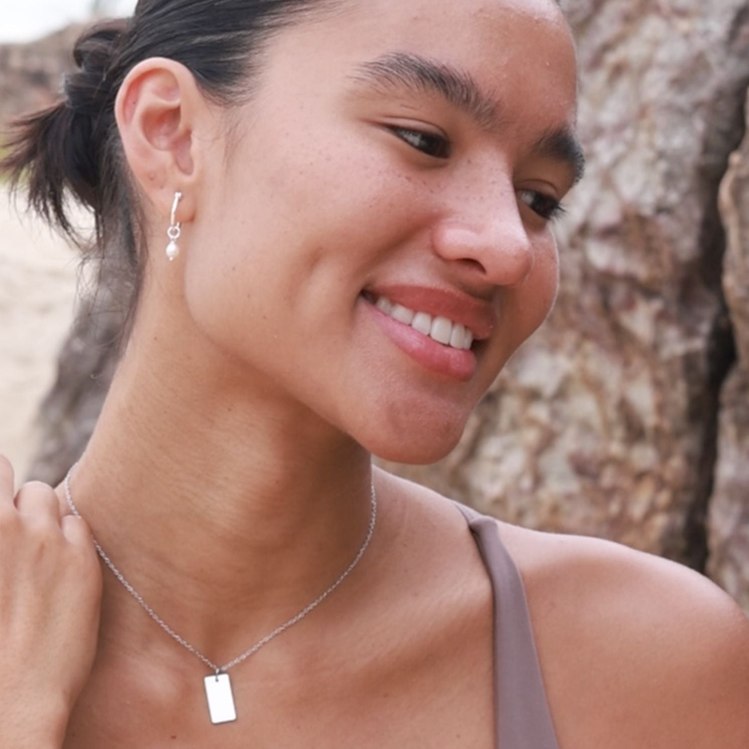 On-trend rectangular bar necklace crafted from 100% high-quality stainless steel or sterling silver. The pendant measures 9x19mm and comes with a 42cm cable chain, adjustable to 38, 40, or 42cm for a perfect fit.
