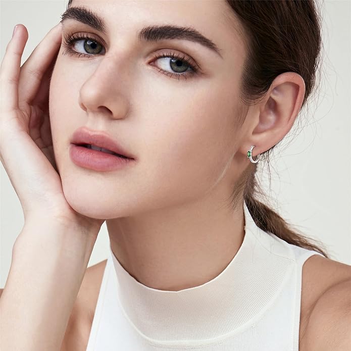 Sterling Silver Hoop Earrings with Emerald CZ