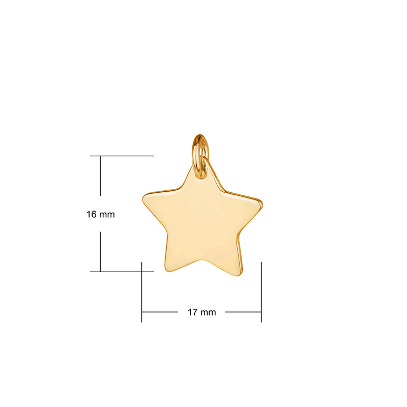 Yellow gold star necklace made from quality sterling silver silver, plated in 14ct yellow gold. This beautiful star is 17mm wide and can be engraved on both sides with your choice of text, such as initials, dates, names or symbols. The cable chain is 42cm and can be worn at 38, 40 or 42cm lengths.